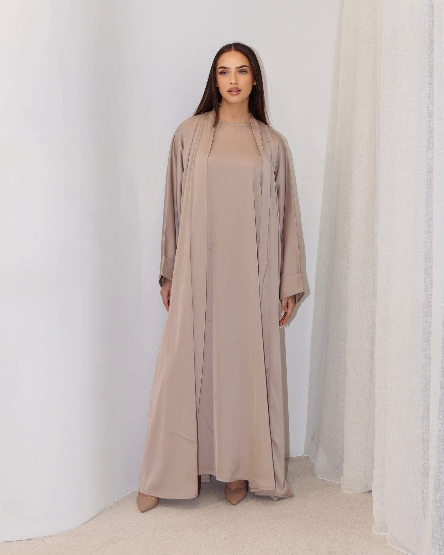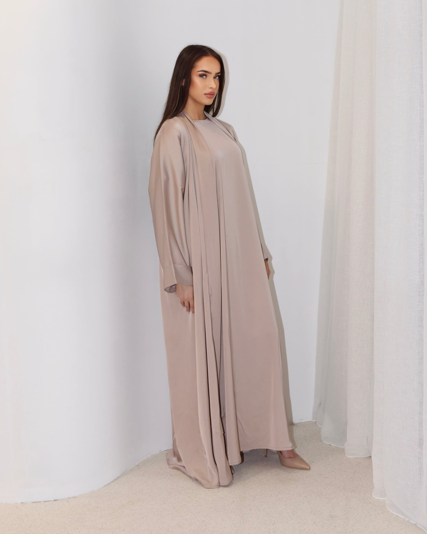 Soft sand tones meet timeless elegance. A flowing design that embodies warmth, refinement and effortless grace.
